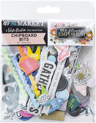 Vicki Boutin’s Flower Emporium Chipboard Bits provide a wealth of embellishment options for your crafting needs. This pack contains 92 assorted chipboard pieces, including a variety of numbers for lists, dates and ages, eye-catching titles to highlight your memories and a curated selection of icons that complement the Flower Emporium aesthetic. Add a touch of dimension and personality to your scrapbooking, card making, and mixed media projects with these high-quality chipboard elements.