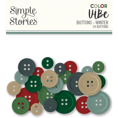 Buttons are the perfect embellishments for adding colour and dimension to your projects. This pack from Simple Stories contains 24 Plastic Buttons - 6 colours in 4 sizes. (6 of each size).