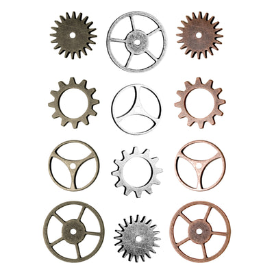 (12) gears. Antique finishes (4 nickel, 4 brass and 4 copper).