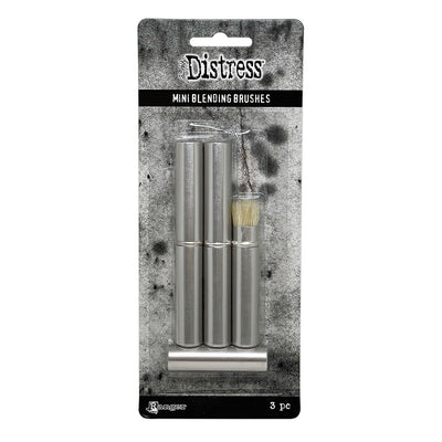 The Tim Holtz Distress Mini Blending Brushes are firm, short bristled brushes designed to create detailed blends. Use to easily apply Distress Ink and Oxide directly to smaller areas, or apply through stencils. Distress Mini Blending Brushes are made with natural fibers. The compact, retractable design is ideal for convenient storing in the Distress Mini Ink Storage Tin.