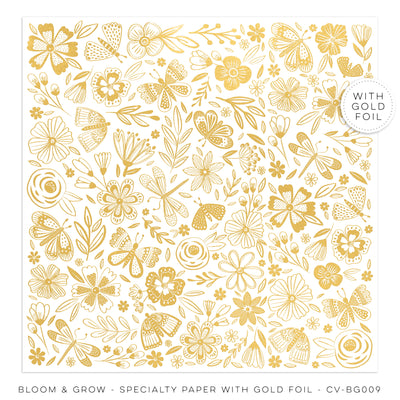 Bloom & Grow “Specialty Paper with Gold Foil” - This gorgeous gold foiled specialty sheet is so versatile - use it on it's own as a background, or fussy cut the elements for extra embellishments. This boosts the embellishment options of this collection with just one sheet of cardstock! Printed on premium quality 250gsm cover weight cardstock. Proudly Designed, Printed & Made in Australia.