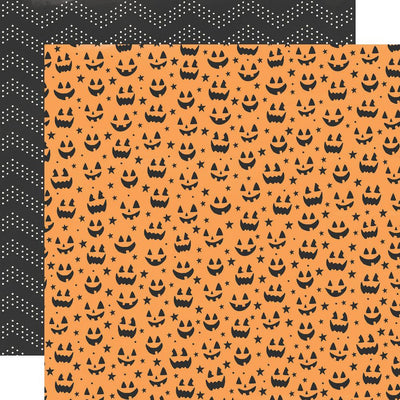 This 12x12 double-sided printed paper is perfect for scrapbooking, card making and other Halloween paper craft projects. Featuring ghoulish jack-o-lantern faces and black & white zig zags, this scrapbook paper is from the Spooky Nights collection by Simple Stories.