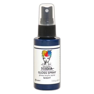 Dina Wakley MEdia Gloss Spray is an opaque acrylic spray that dries to a glossy finish. Spray into Media Journals, onto Chipboard Shapes, Media Board and other porous surfaces. Gloss Sprays are water-soluble when wet, permanent when dry. All Dina Wakley MEdia Gloss Spray colors are available in a 1.9 fl. oz. spray bottle.