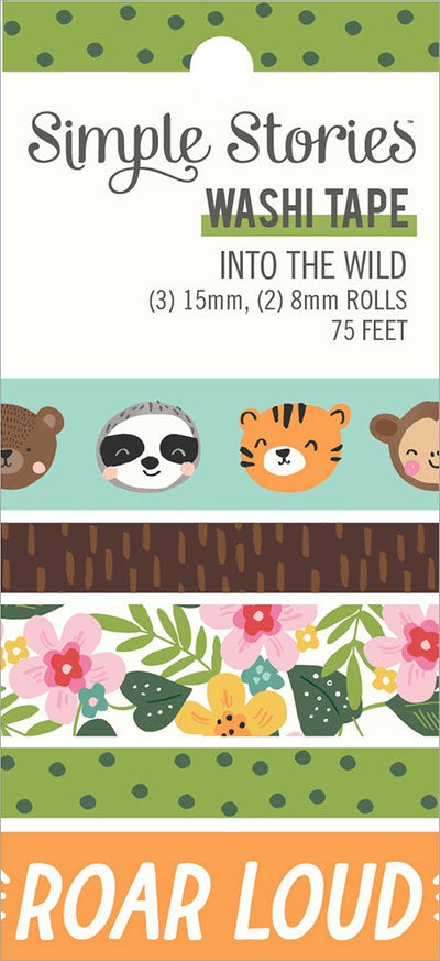 Washi tape can be functional, decorative or both in your scrapbooks, planners, notebooks and papercraft projects! This pack of (5) rolls is part of the Into The Wild collection by Simple Stories. Pack contains (2) 8mm rolls and (3) 15mm rolls for a total of 75 feet.