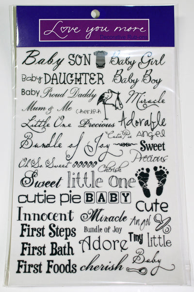 Our high quality, black rub ons are the perfect addition to your scrapbook layouts, cards or craft projects. They are easily transferred on to any smooth surface using the stick supplied.