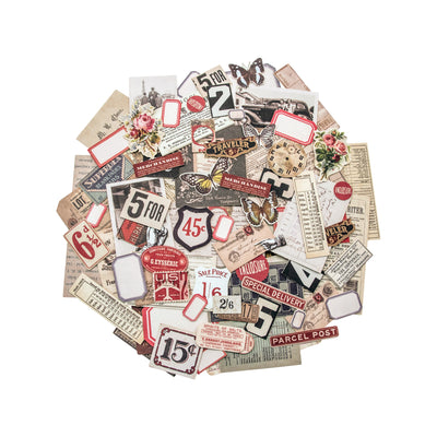 Create vintage inspired mixed media art projects with the Ephemera Pack that is part of the Idea-ology Collection. The package includes 111 die cut cardstock pieces designed by Tim Holtz for Advantus.