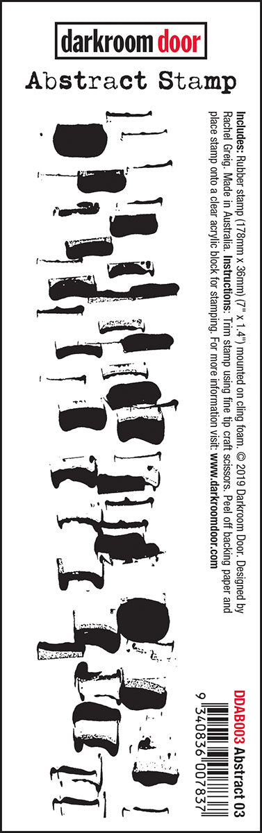 Darkroom Door Abstract Stamps are mounted on cling foam. Suitable for card making, art journals, mixed media and more! Darkroom Door rubber stamps are known for their durability, deep etching and high image detail.