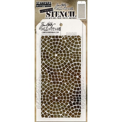 You'll love all the creative options you have with Layering Stencils designed by Tim Holtz for Stampers Anonymous. Included in the package is one reusable stencil that measures 4" x 8.5".
