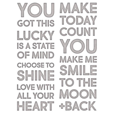 Positivity is key and this Bold Text #2 Die Cutting Set by designer Tim Holtz lives and breathes that mantra! With an array of phrases this Sizzix Die Cutting Set is sure to add some extra special words to your next crafting project. Set includes 7 dies.
