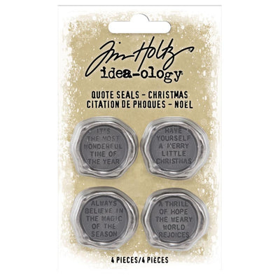 Add a merry rhyme to your project next time with these Tim Holtz Christmas Quote Seals. Each seal features a different festive quote and the metal tokens have been shaped to resemble stamped wax seals. Simply adhere for a jolly or poetic touch to your next Christmas craft. Constructed of metal with antique nickel finish, pack includes 4 seals that measure approximately 1 inch in diameter.