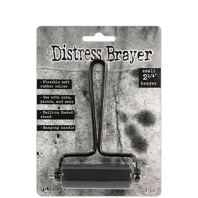 The brand new Tim Holtz Distress Brayer is ideal for various ink, paint, and texture techniques!  The flexible, soft rubber roller measures 2.25" and is designed to provide better contact on textured surfaces when applying inks, paints, and mediums to stamps, papers, and mixed-media surfaces.